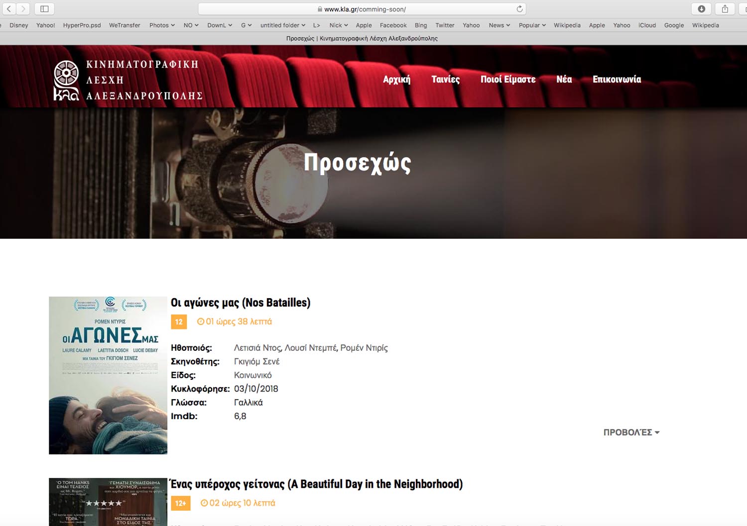Ήταν ιδιαίτερη χαρά και πρόκληση για εμάς να δημιουργήσουμε τη νέα ιστοσελίδα της Κινηματογραφικής Λέσχης Αλεξανδρούπολης. Μιας λέσχης που ιδρύθηκε το 1974 και είναι ένα από τα σημαντικότερα πολιτιστικά σωματεία της Αλεξανδρούπολης με συνεχή παρουσία και οργάνωση, γραφεία, ψηφιοποιημένο αρχείο, οργανωμένη και συστηματική εθελοντική προσφορά.